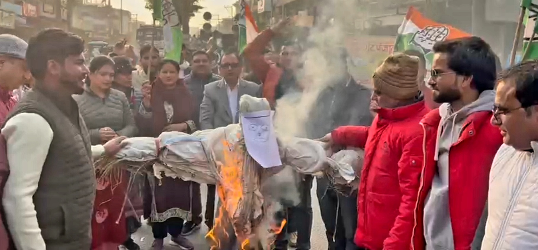 इस दौरान कांग्रेस कमेटी के तमाम लोगों ने पहाड़ी गली चौक पर बांग्लादेश के विरुद्ध नारेबाजी करते हुए पुतला दहन भी किया।